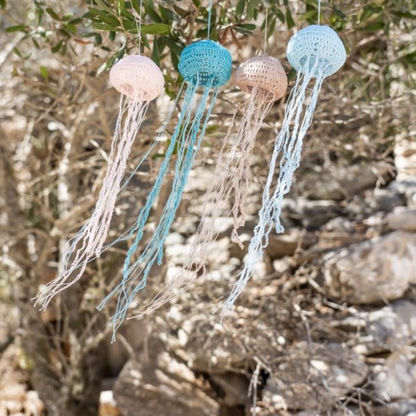 Η Αύρα είναι η μεσαία μέδουσα της συλλογής Paresa, με διάμετρο 6,5–7 εκ. και πλοκάμια περίπου 22–25 εκ. Πλεγμένη στο χέρι με προσοχή στη λεπτομέρεια, συνδυάζει κομψότητα και παιχνιδιάρικη κίνηση.
